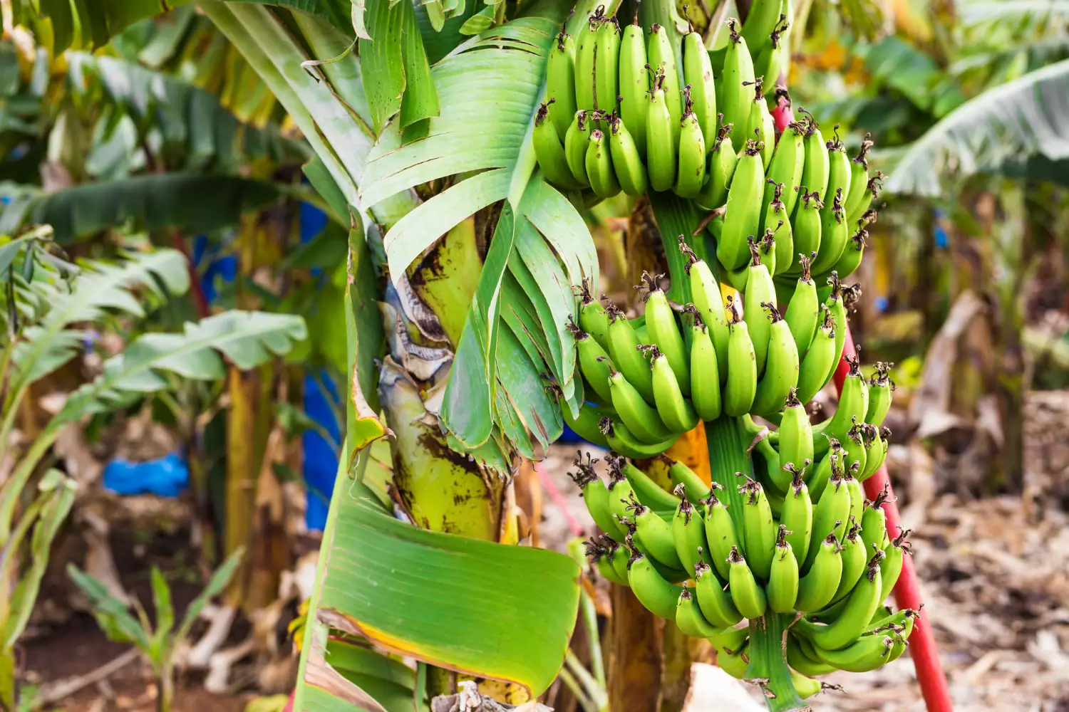 Developing banana large scale farm using systematic irrigation system and tissue culture seedlings to ensure consistent yields and reduce the risk of phatogens attack.